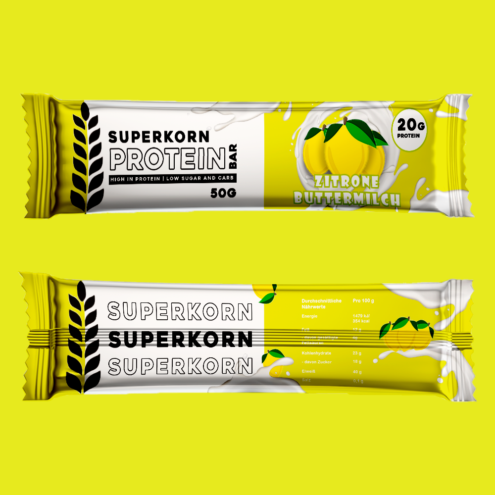 MOCK UP SUPERKORN Protein Bar Concept Superkorn_Mockup_Erdbeere Superkorn_Mockup_Blaubeere Superkorn_Mockup_Zitrone „Stil hat alles Unfertige und Zufällige.“ – Andy Warhol